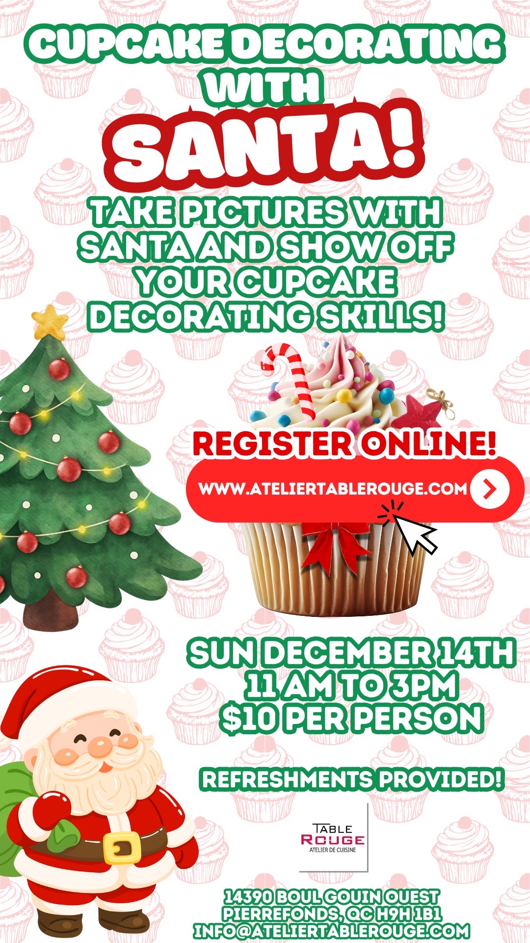 Join us for a festive afternoon of creativity and fun! Decorate your own cupcakes, take pictures with Santa, and show off your holiday decorating skills.