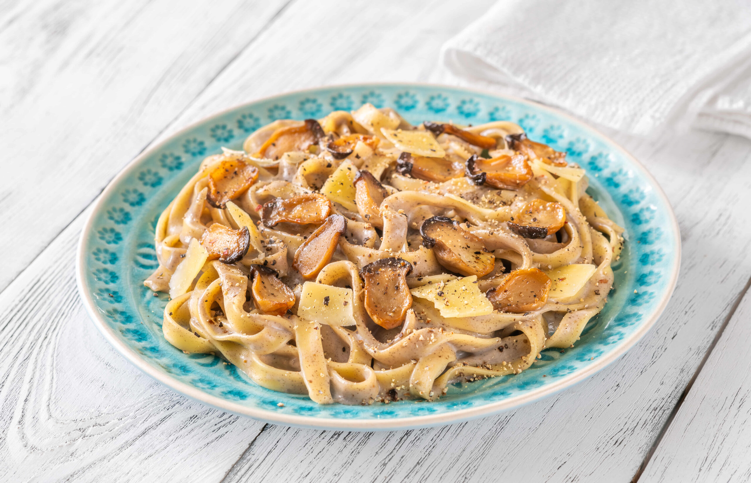 🍝 Fettuccini w/ ham, pea & mushroom cream sauce